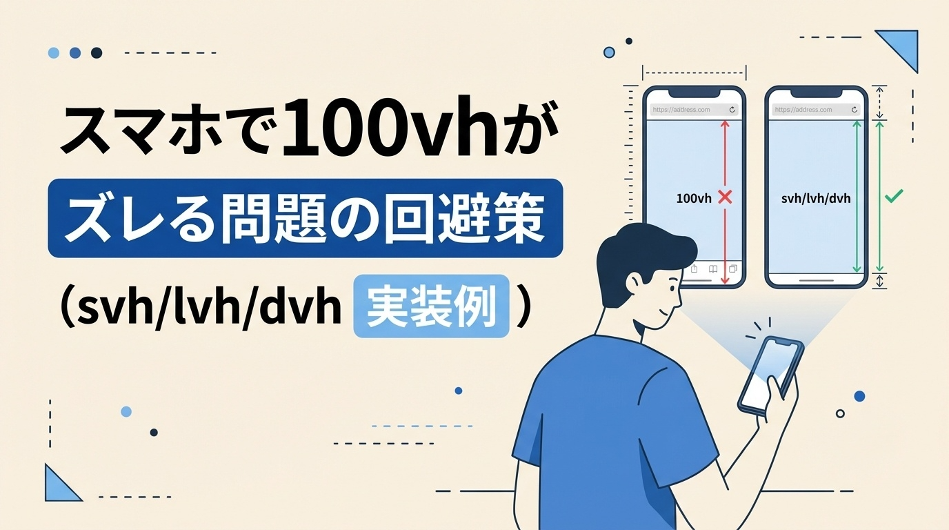 「スマホで100vhを指定したのに、画面からはみ出してスクロールが発生してしまう…」こんな経験はありませんか?PCでは問題なく全画面表示できていたのに、スマホのアドレスバーやツールバーのせいで意図しない余白やズレが生じる […]