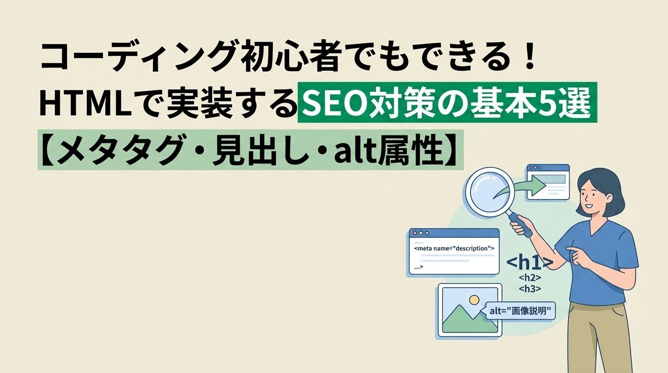 コーディング初心者でもできる!HTMLで実装するSEO対策の基本5選【メタタグ・見出し・alt属性】